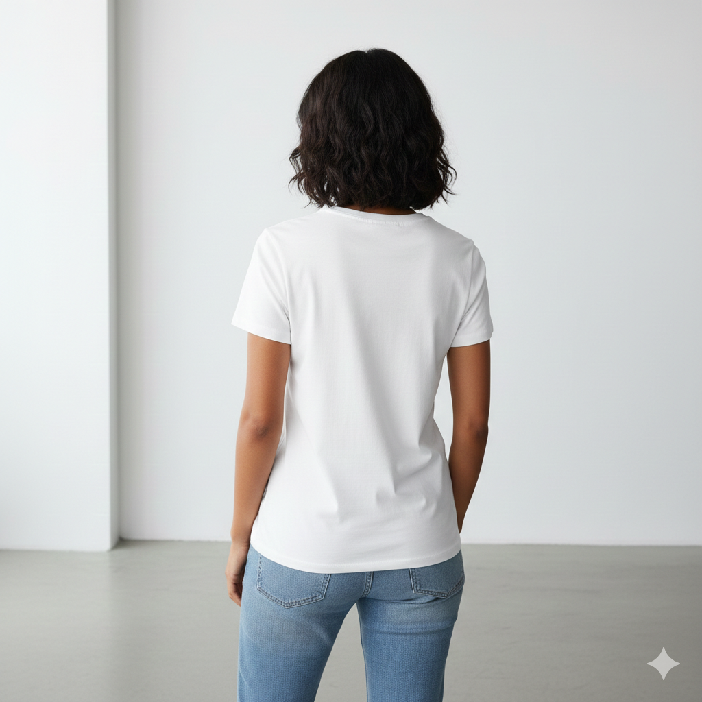 Featuring a clean crew neckline and a relaxed yet flattering fit, this tee pairs seamlessly with denim, tailored trousers, or layered under jackets and cardigans. Its clean, minimal design makes it easy to style across seasons and occasions.