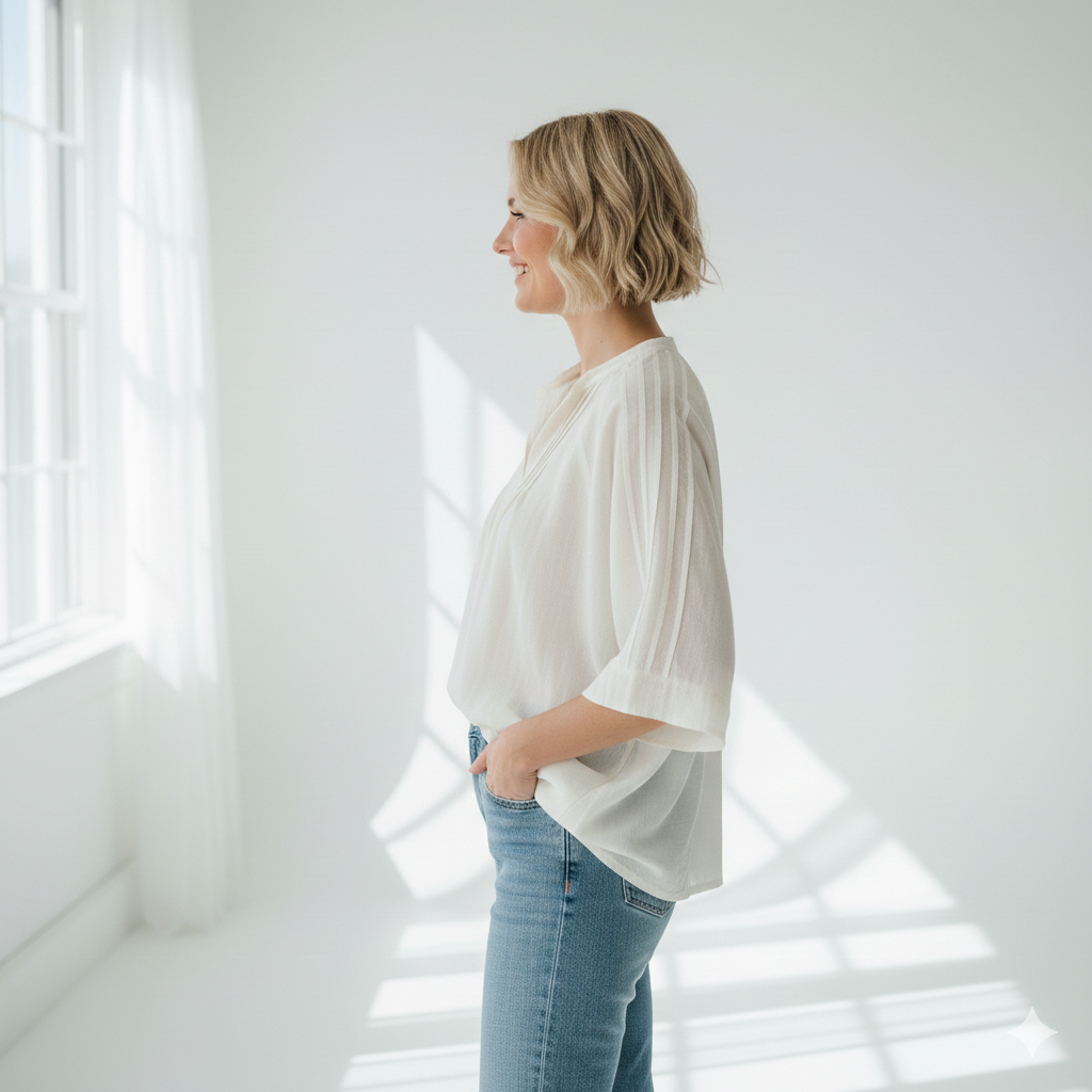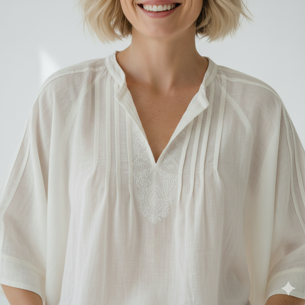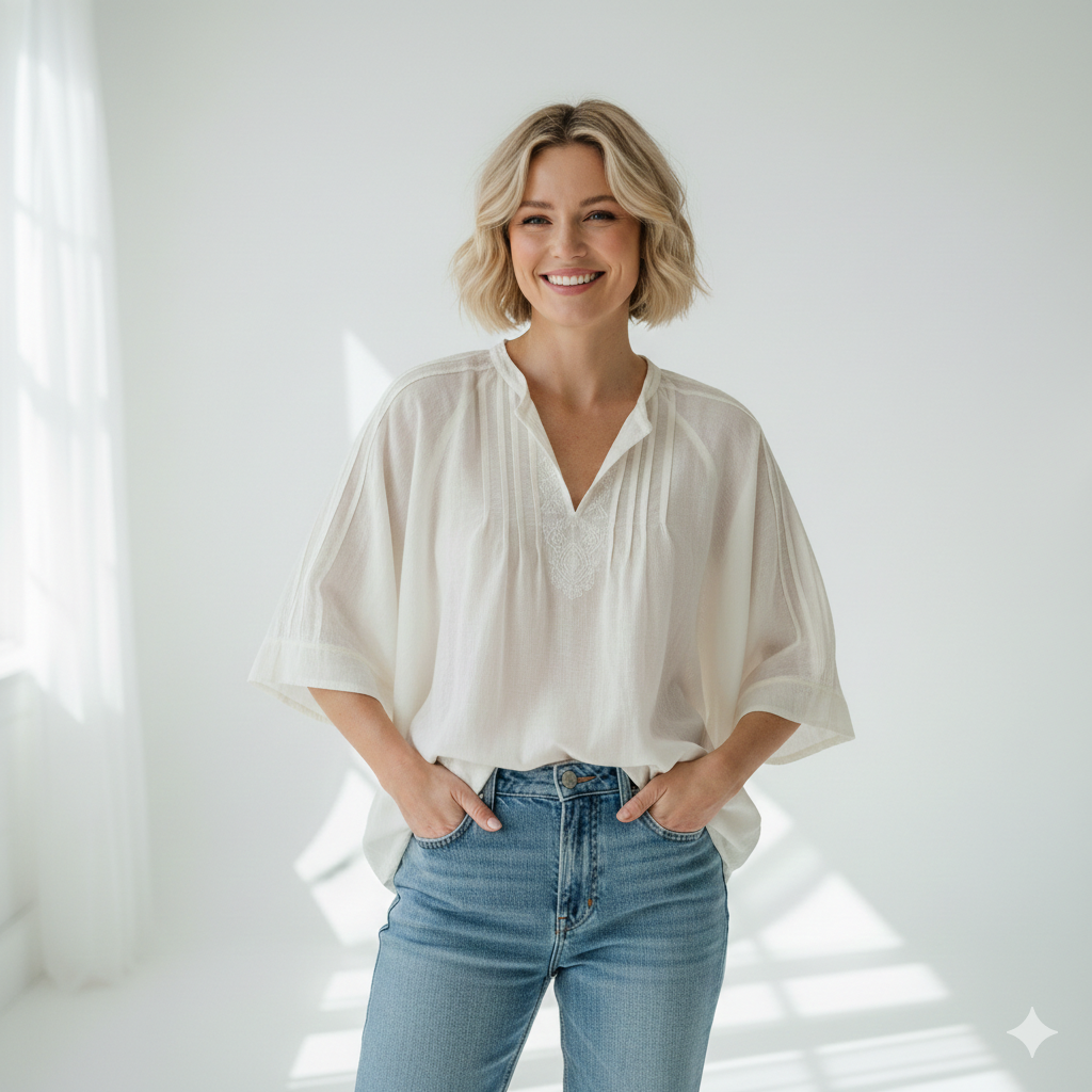 Light, airy, and effortlessly feminine – the Flowy Summer Blouse is made for warm days and easy elegance. Designed with a relaxed silhouette, it drapes beautifully over the body, offering both comfort and graceful movement with every step.